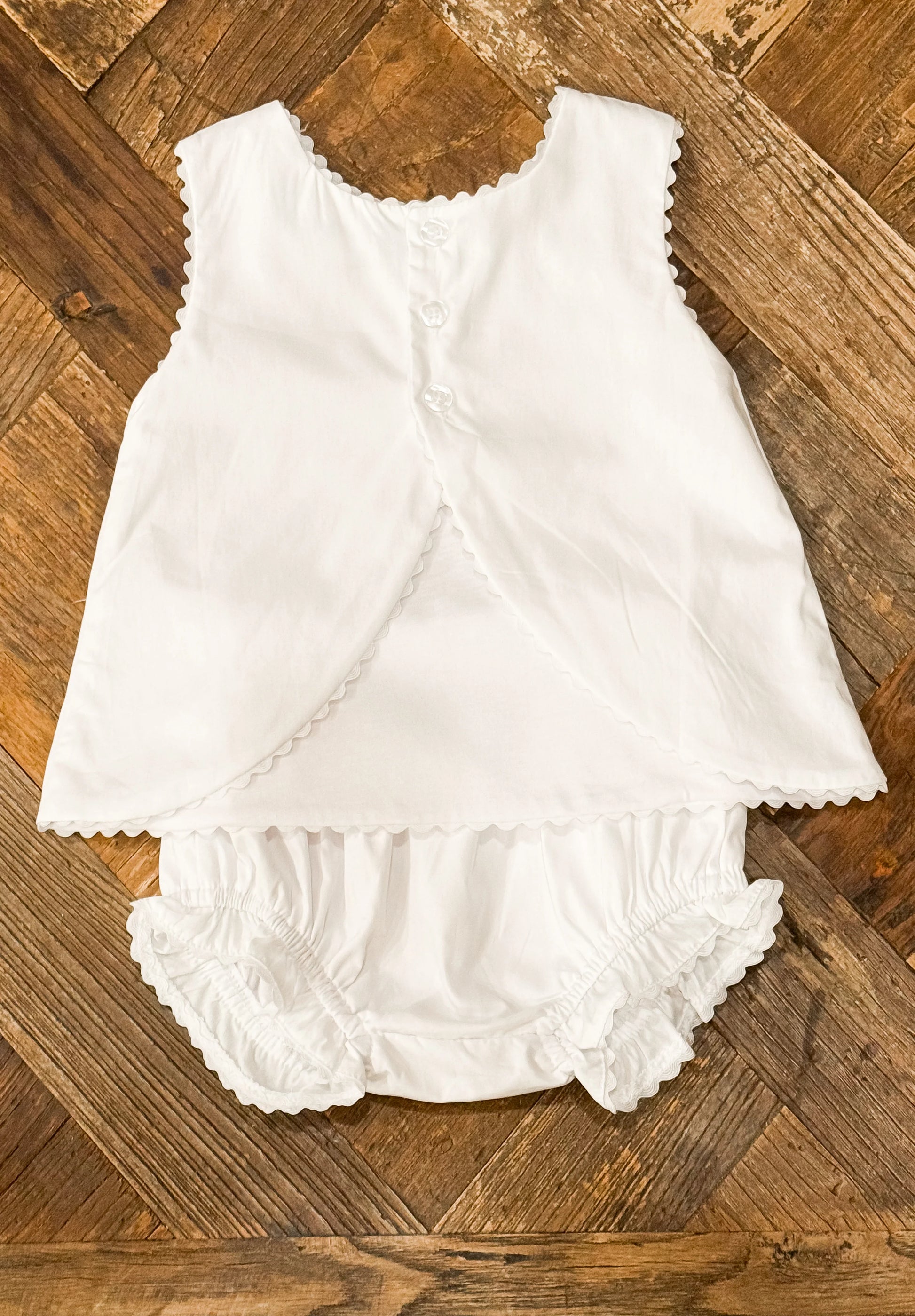 Swing back diaper set made from white woven cotton