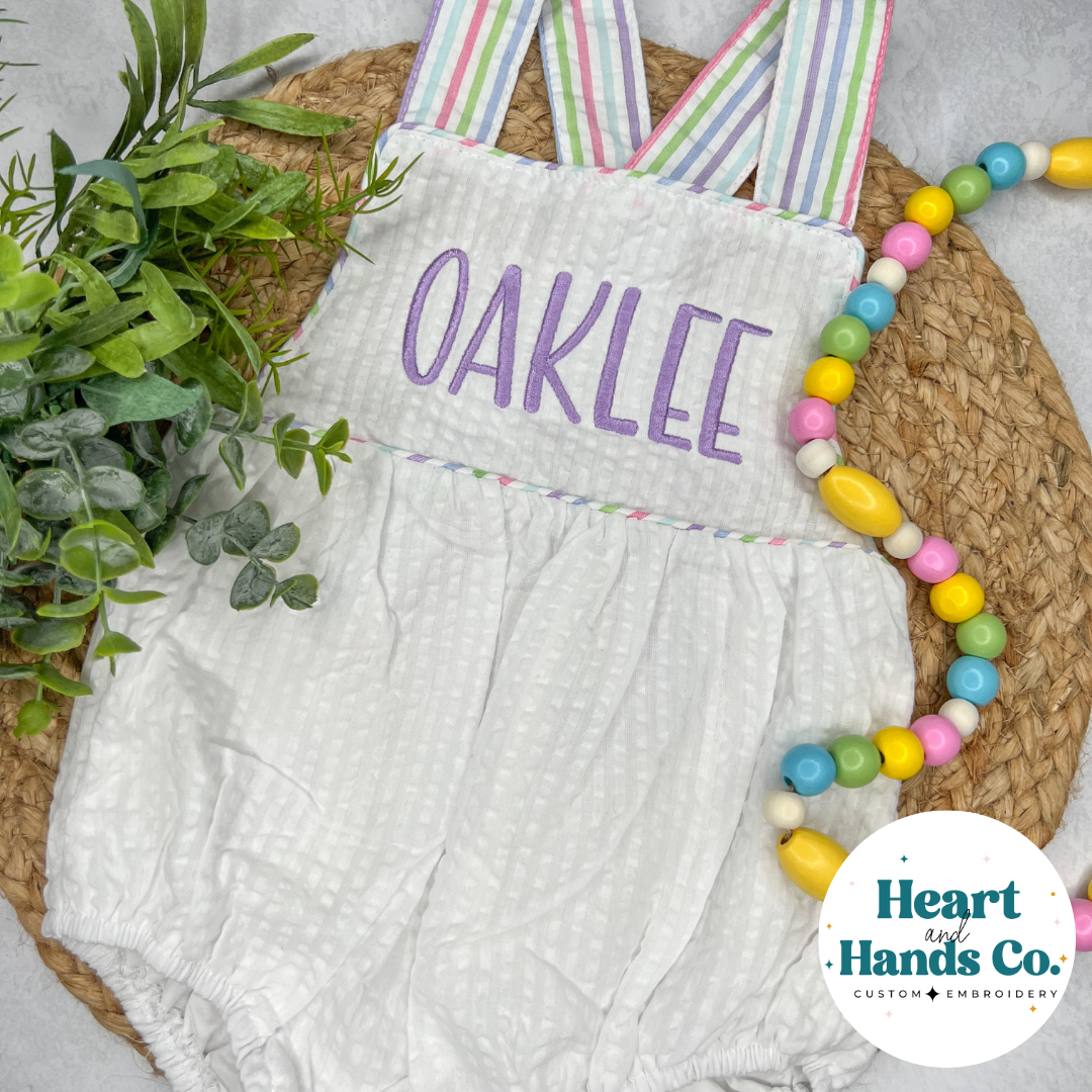 PICTURED: Multicolor w/ font "Parker" in lavender thread. Item price includes embroidery.